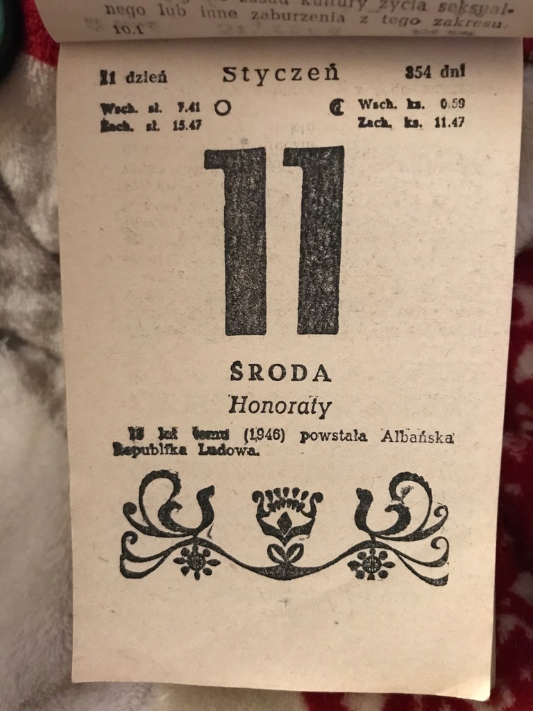 kalendarz 1961