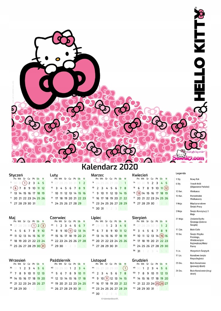 kalendarz szkolny hello kitty