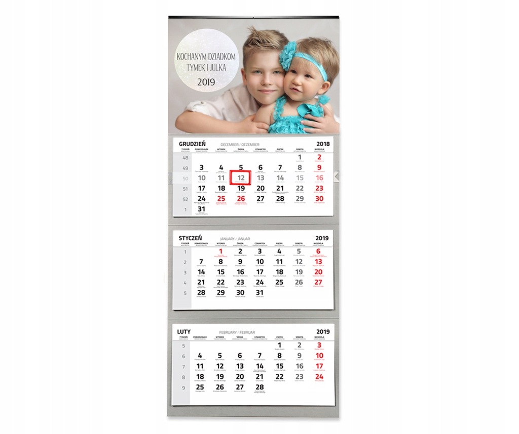 kalendarz trójdzielny z własnym zdjęciem 2021