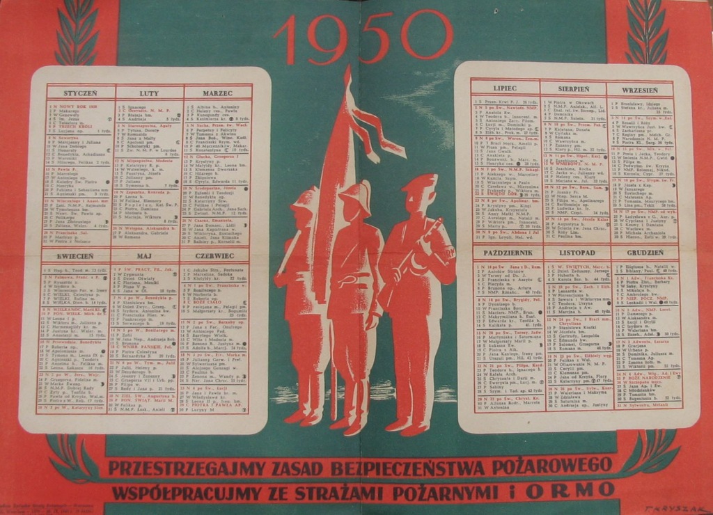 - Kalendarz na cały rok 1950 z zaznaczeniem dni wolnych od pracy świąt państwowych i świat zwyczajowych.