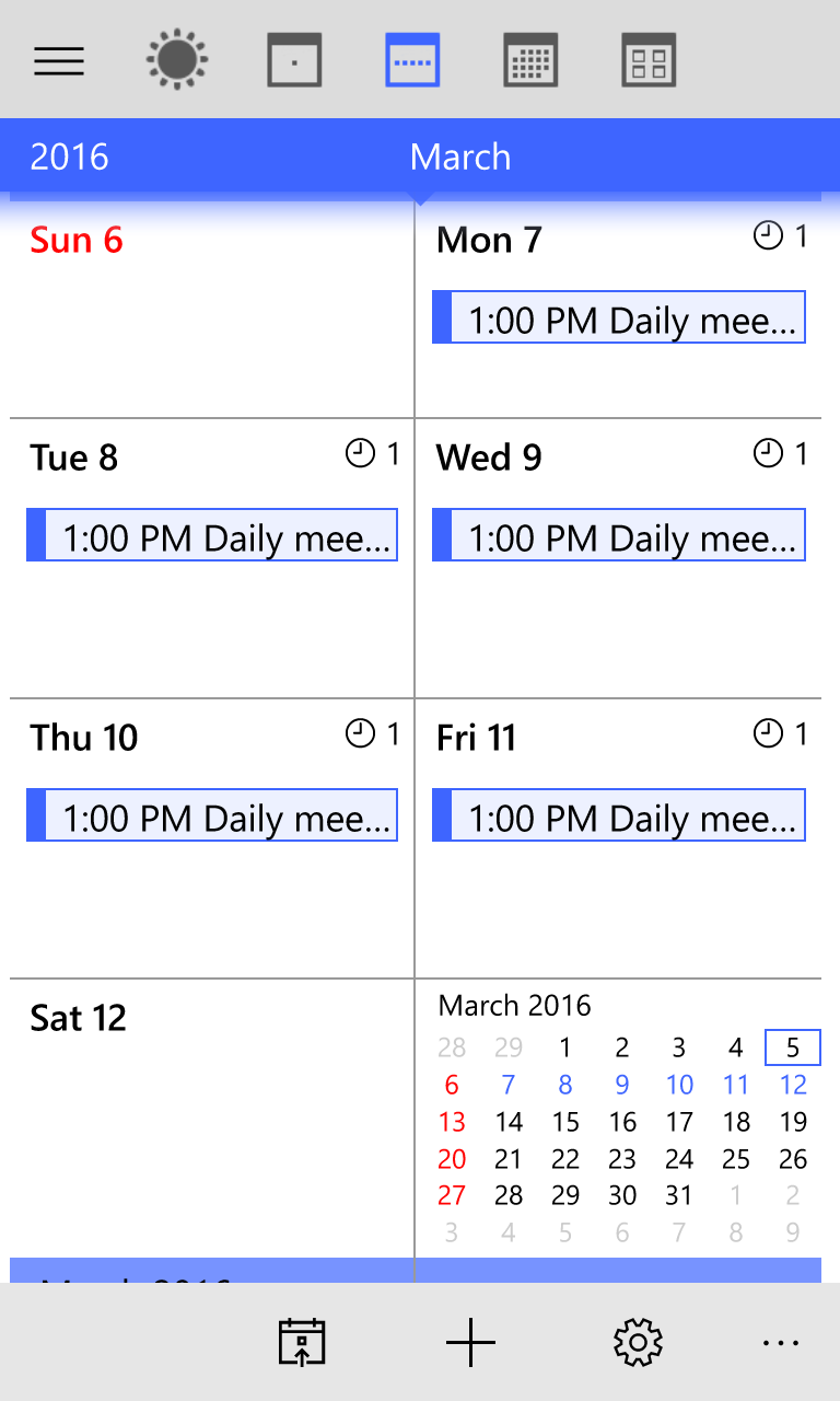 - Nie można przełączyć na widok całego kalendarza.